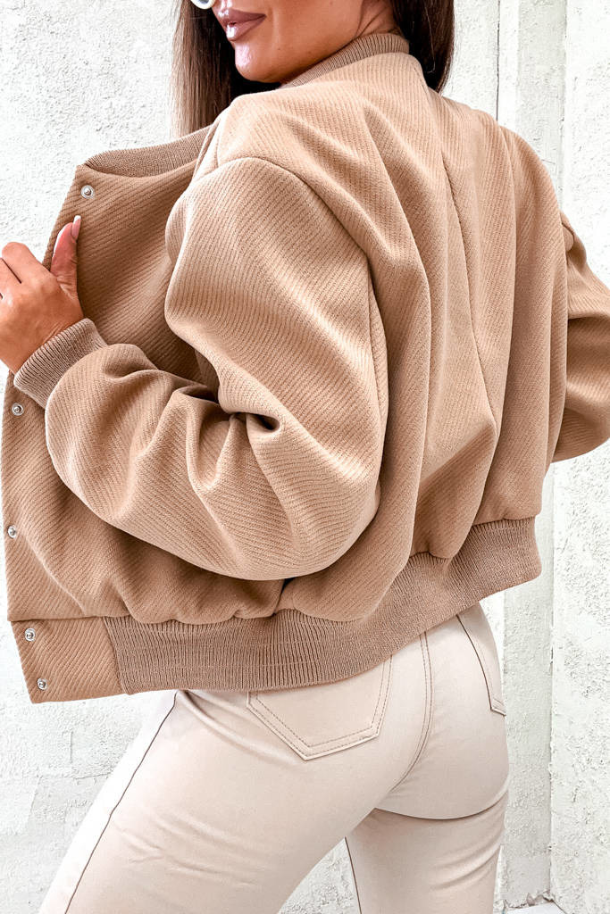 KURTKA OVERSIZE BOMBERKA ZAPINANA NA GUZIKI- BRĄZOWA