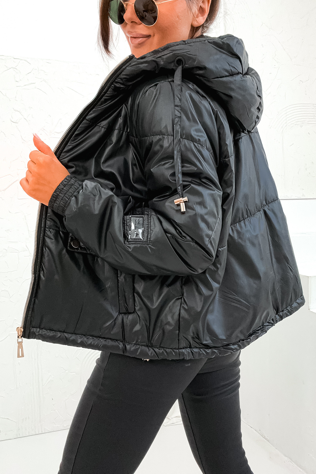 KURTKA ASYMETRYCZNA ZE ZŁOTYMI ELEMENTAMI- CZARNA