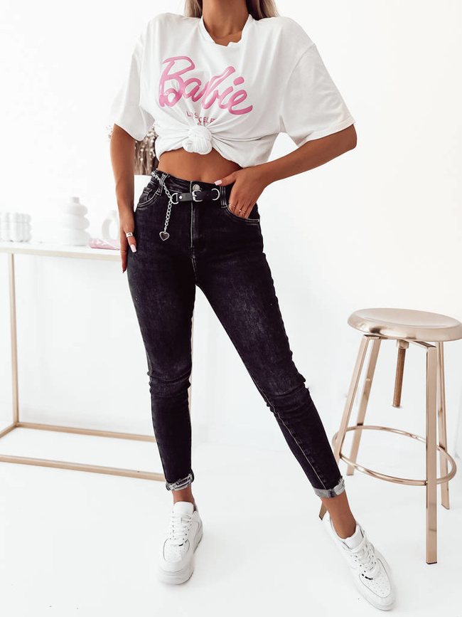 SPODNIE JEANSOWE CZARNE + PASEK Z ŁAŃCUSZKIEM