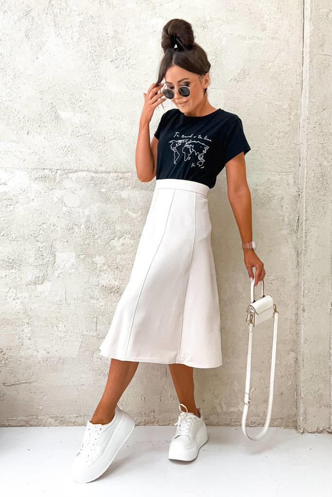 BEŻOWA ROZKLOSZOWANA SPÓDNICA MIDI
