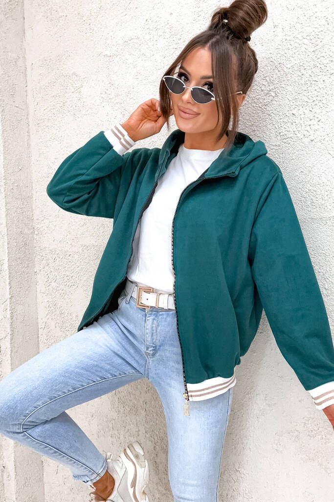 BLUZA ZAMSZOWA Z KONTRASTOWYMI ŚCIĄGACZAMI- ZIELONA