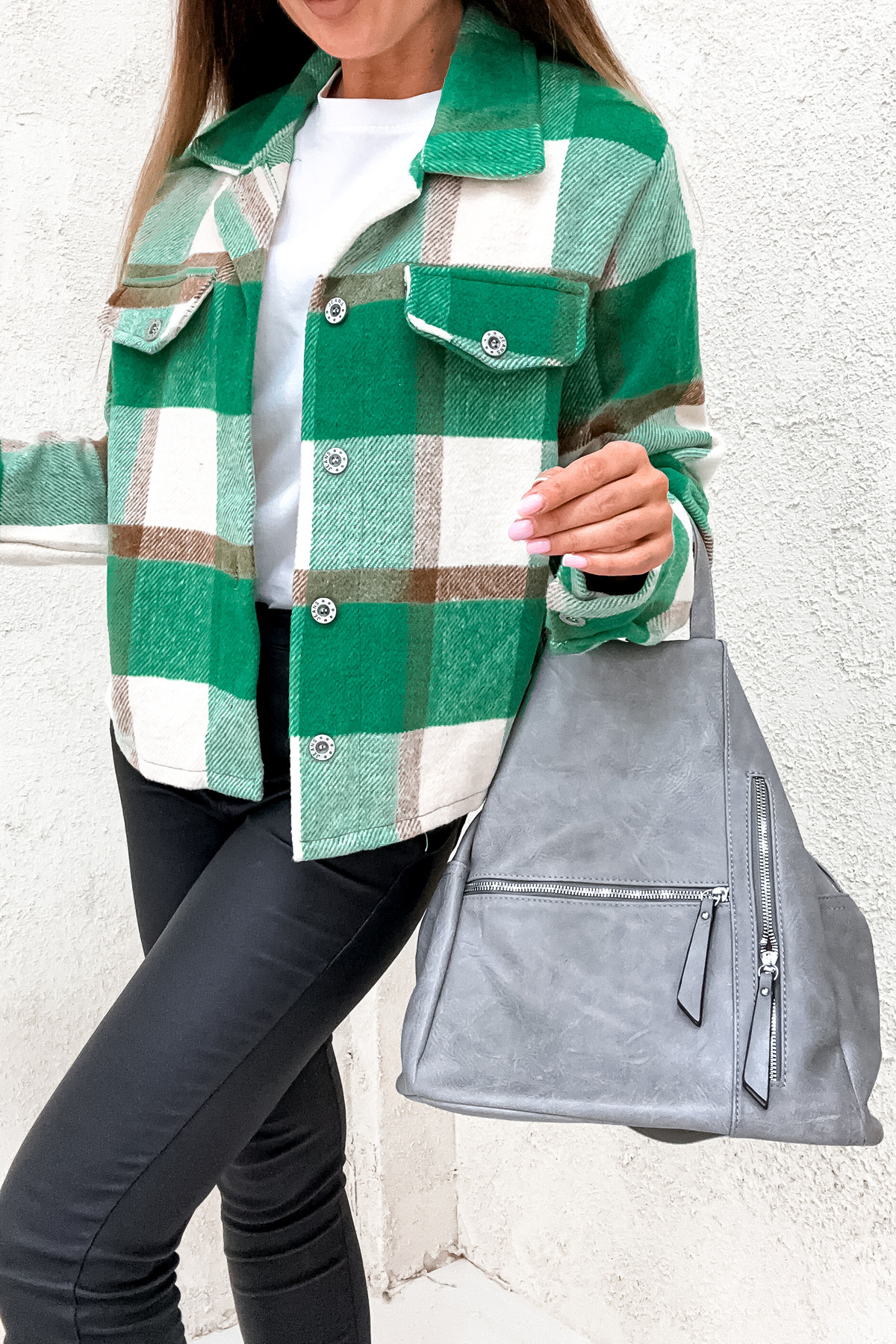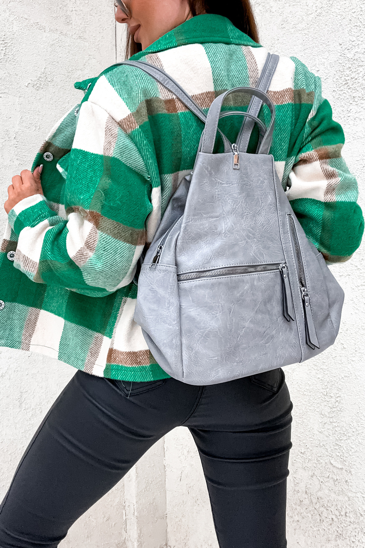 PLECAK Z IMITACJI SKÓRY Z OZDOBNYMI ZAMKAMI- SZARY