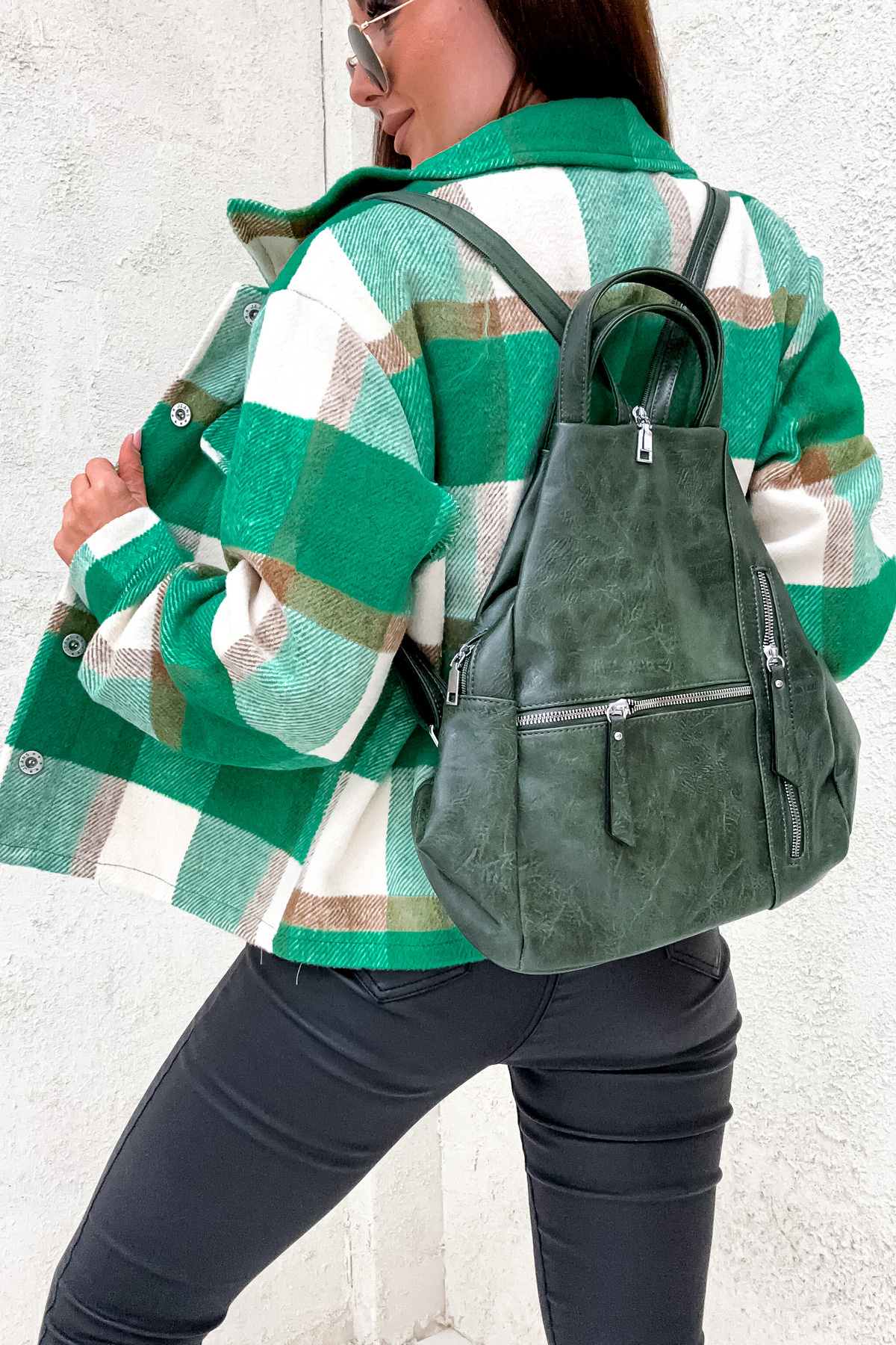 PLECAK Z IMITACJI SKÓRY Z OZDOBNYMI ZAMKAMI- ZIELONY