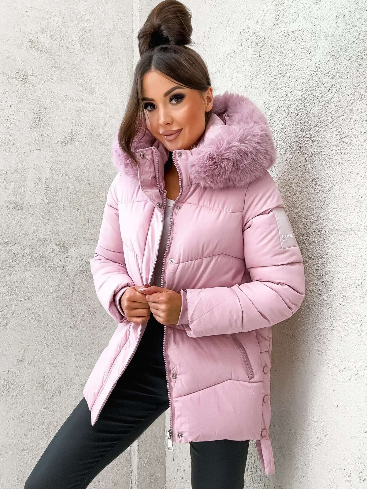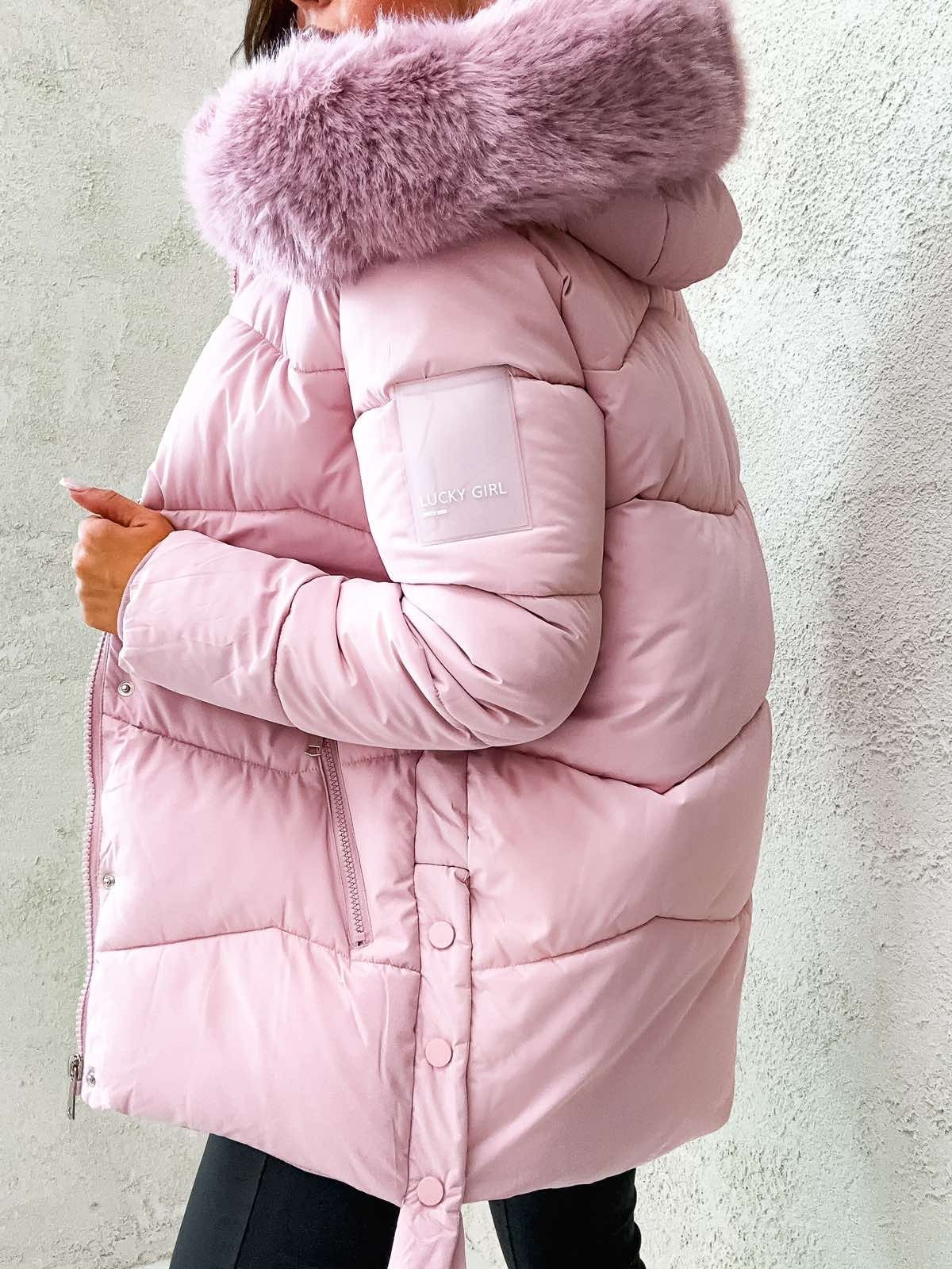 KURTKA Z NASZYWKĄ I LISEM NA KAPTURZE- RÓŻOWA