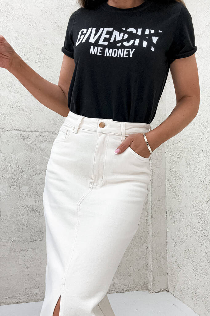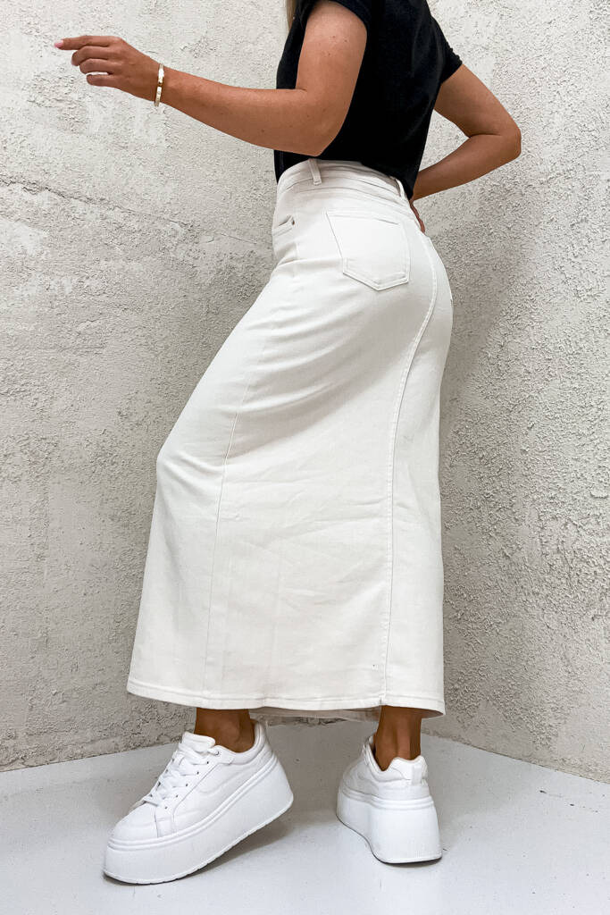 SPÓDNICA JEANSOWE MAXI Z ROZCIĘCIEM- EKRI