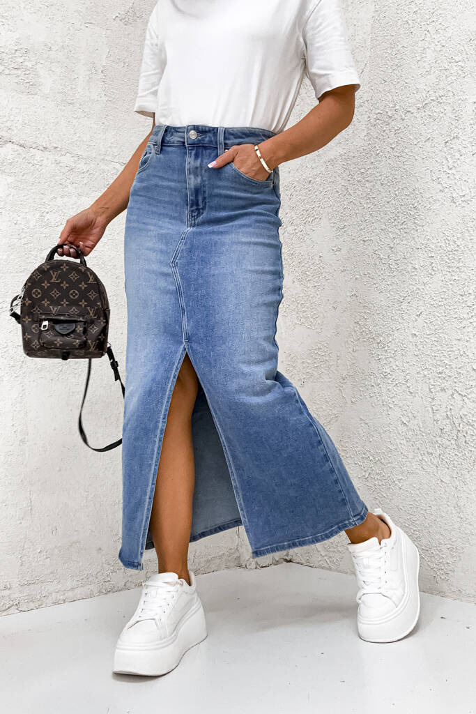 SPÓDNICA JEANSOWE MAXI Z ROZCIĘCIEM- GRANATOWA