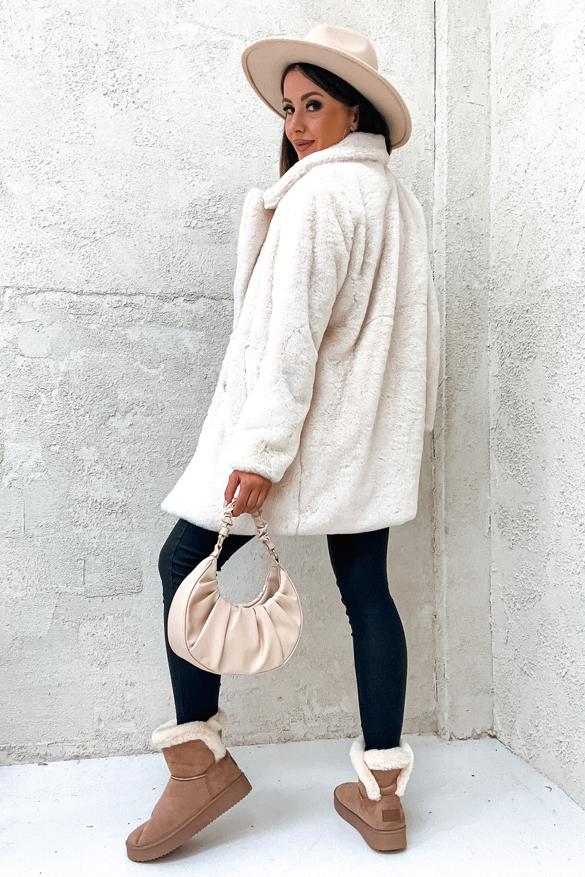 FUTRZANY PŁASZCZ Z KIESZENIAMI- BIAŁY