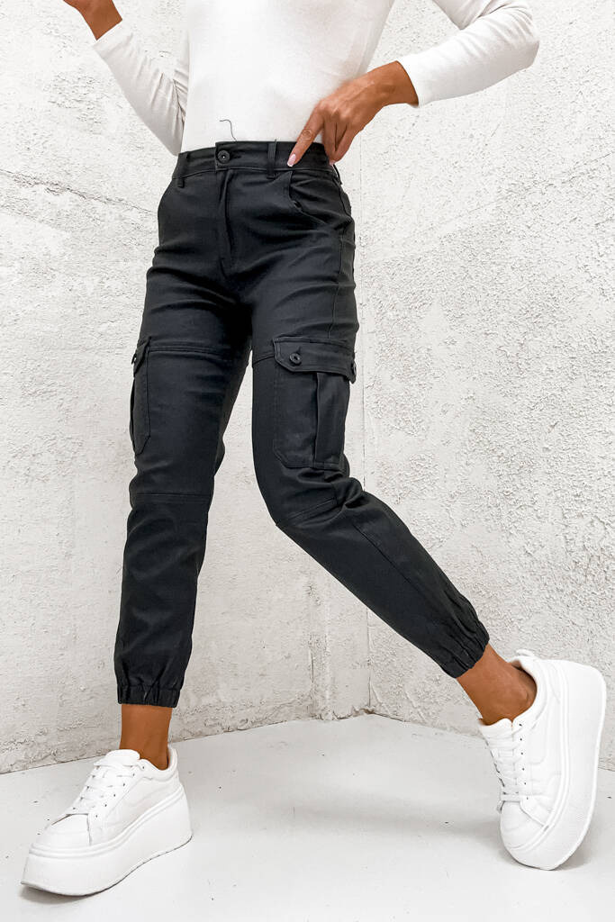 SPODNIE BOJÓWKI Z IMITACJI SKÓRY- CZARNE