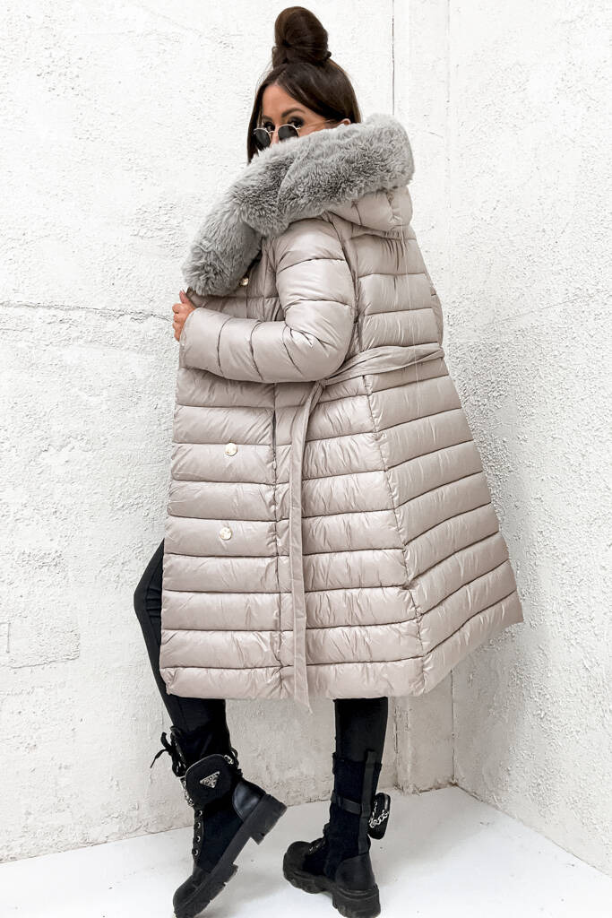 PIKOWANY PŁASZCZ ZE ZŁOTYMI GUZIKAMI I PASKIEM- BEŻOWY