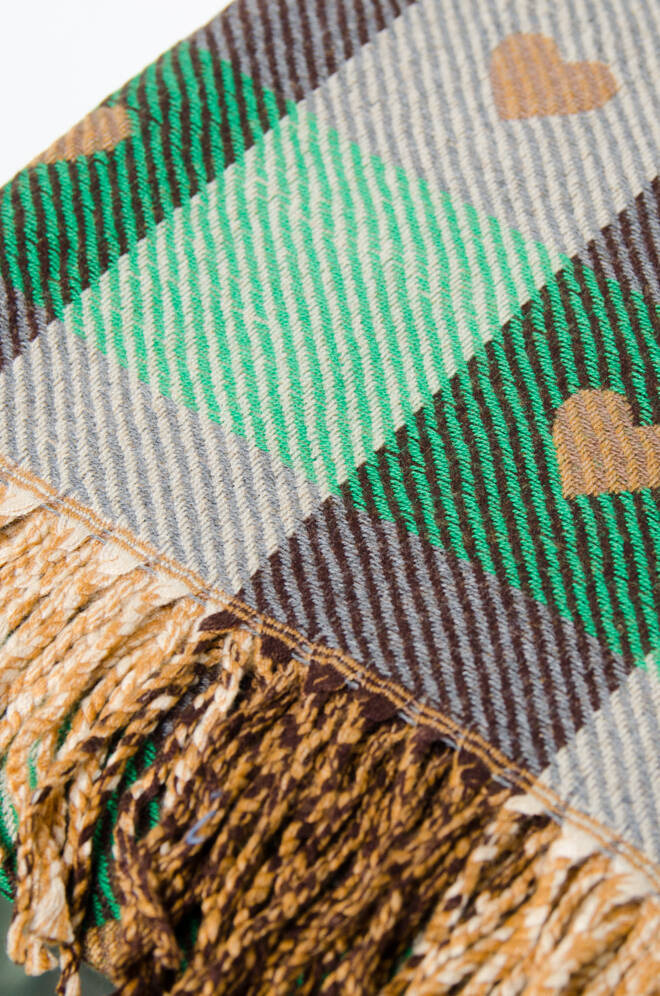 SZAL W DROBNĄ KRATE Z SERCAMI- ZIELONY