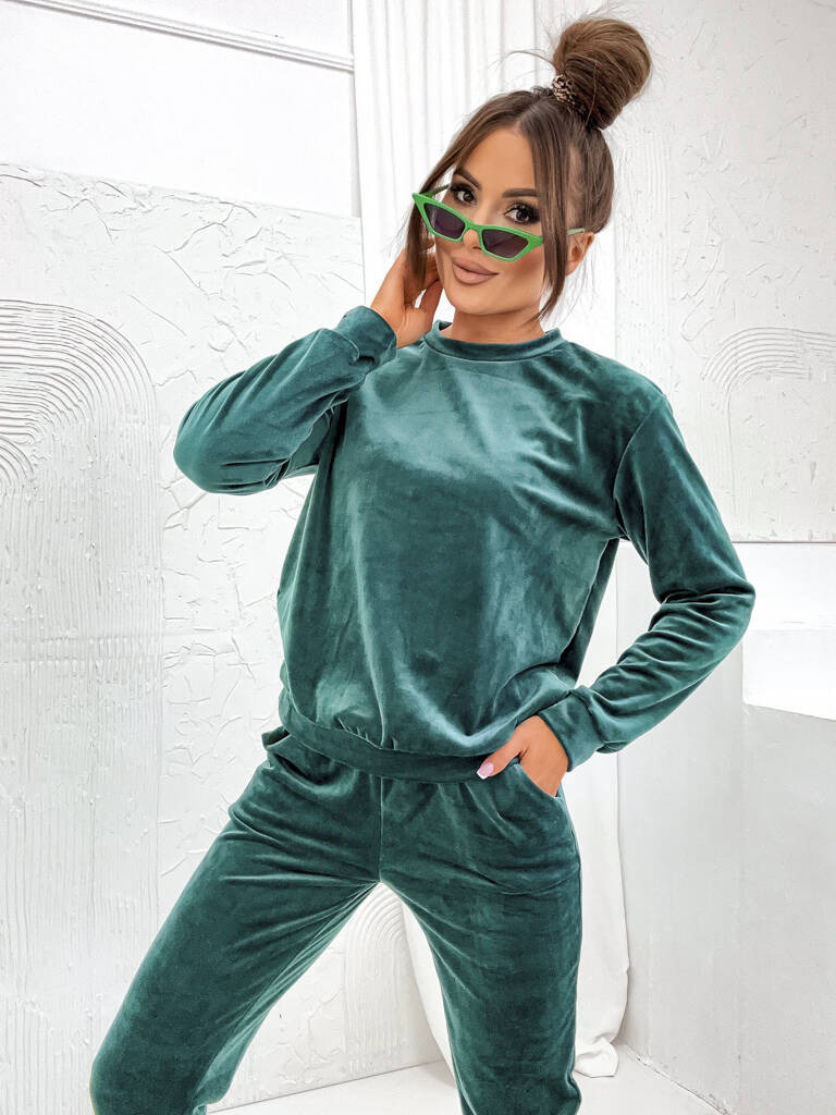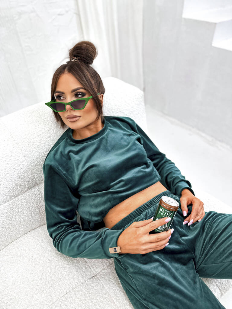 WELUROWY KOMPLET DRESOWY Z NASZYWKĄ NA RĘKAWIE- BUTELKOWA ZIELEŃ