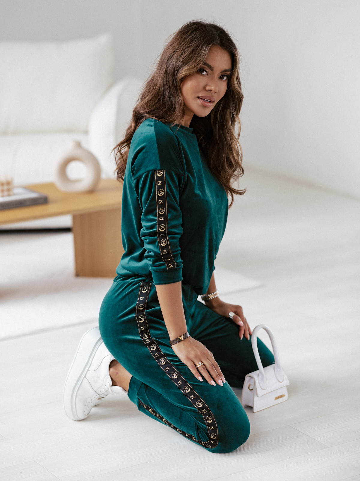 WELUROWY KOMPLET DRESOWY BLUZA Z LAMPASEM + SPODNIE- BUTELKOWA ZIELEŃ