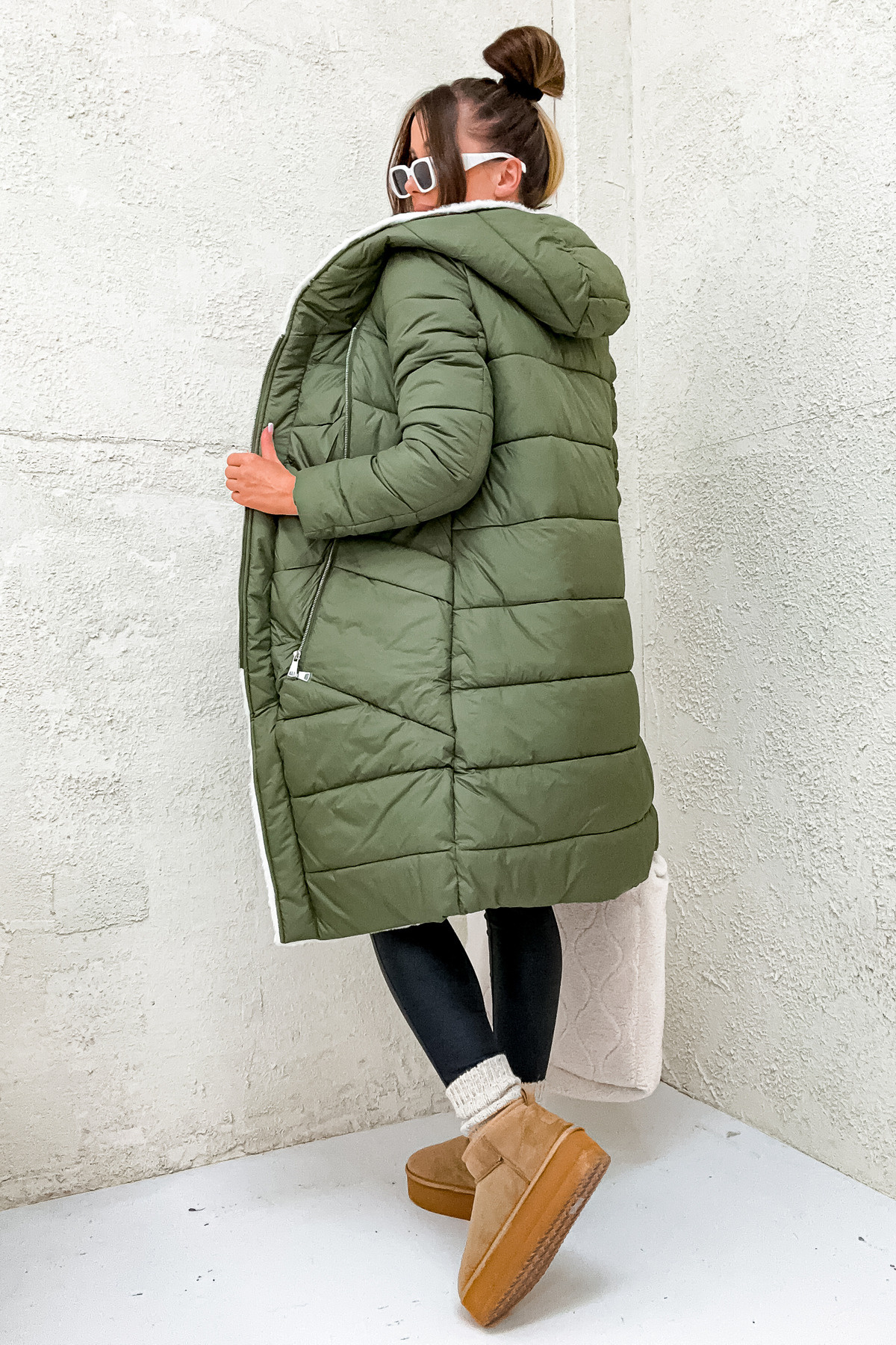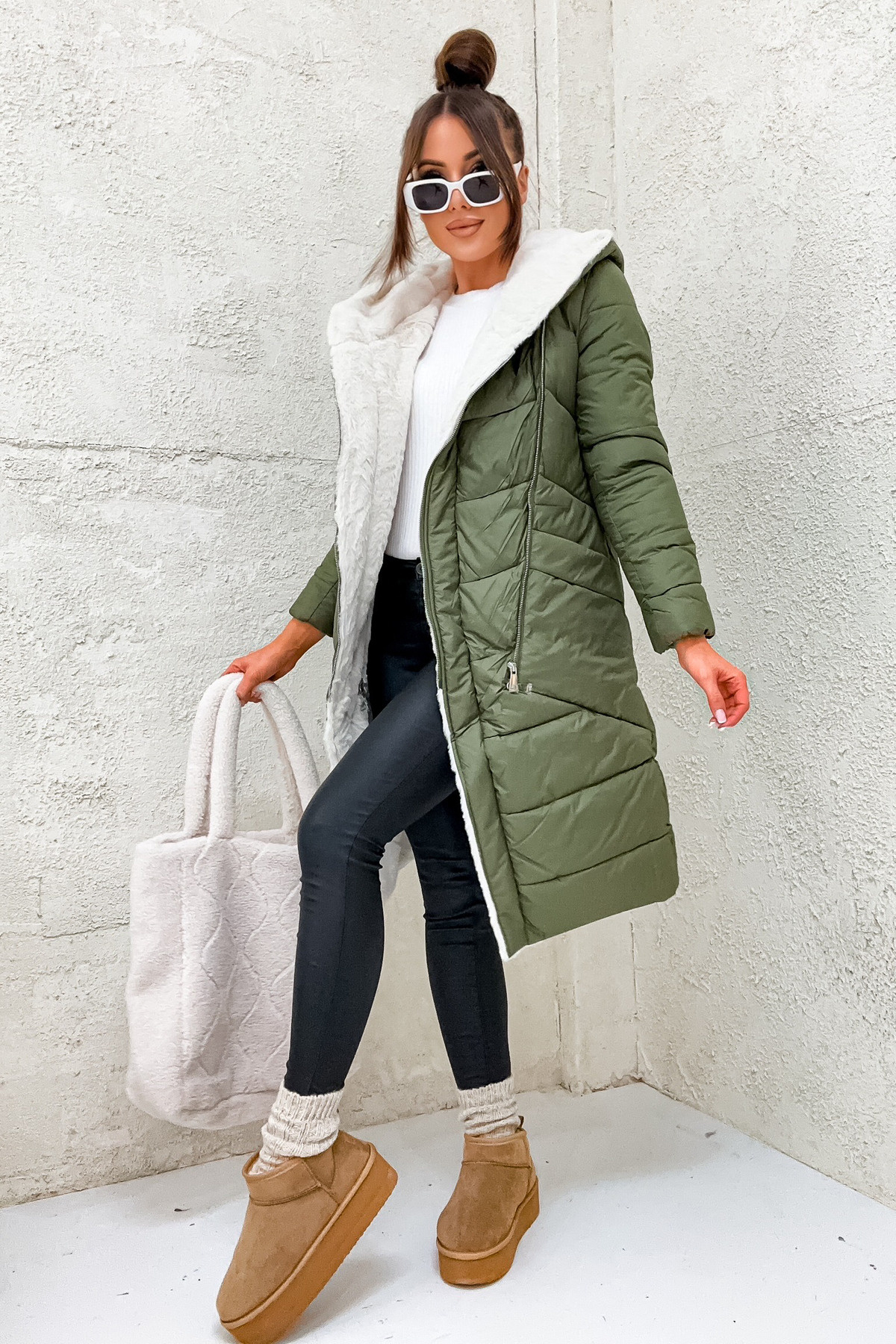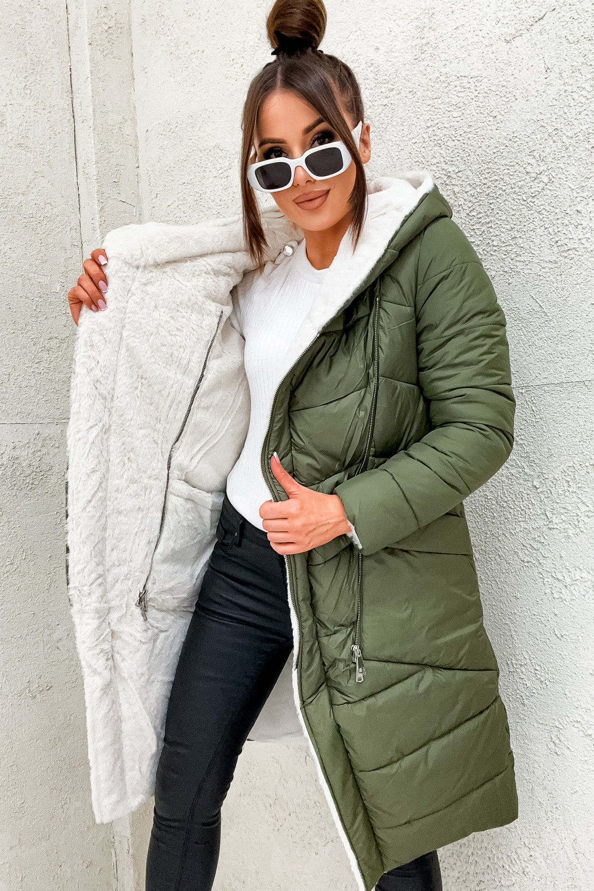 DŁUGA DWUSTRONNA KURTKA Z FUTERKIEM- ZIELONA