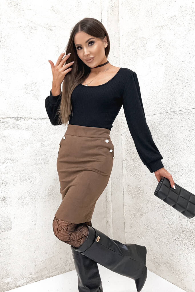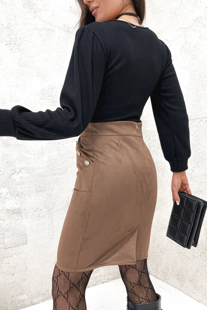 ZAWSZOWA SPÓDNICA MIDI Z OZDOBNYMI GUZIKAMI- BRĄZOWA