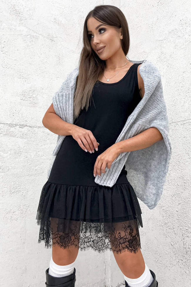 CZARNA SUKIENKA HALKA Z KORONKĄ