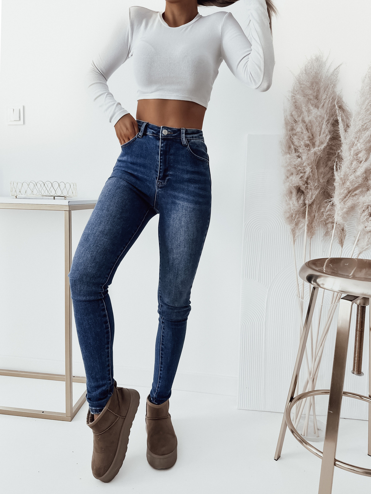 CIEMNE SPODNIE JEANSOWE PUSH UP Z PRZETARCIAMI- BARDZO WYSOKI STAN