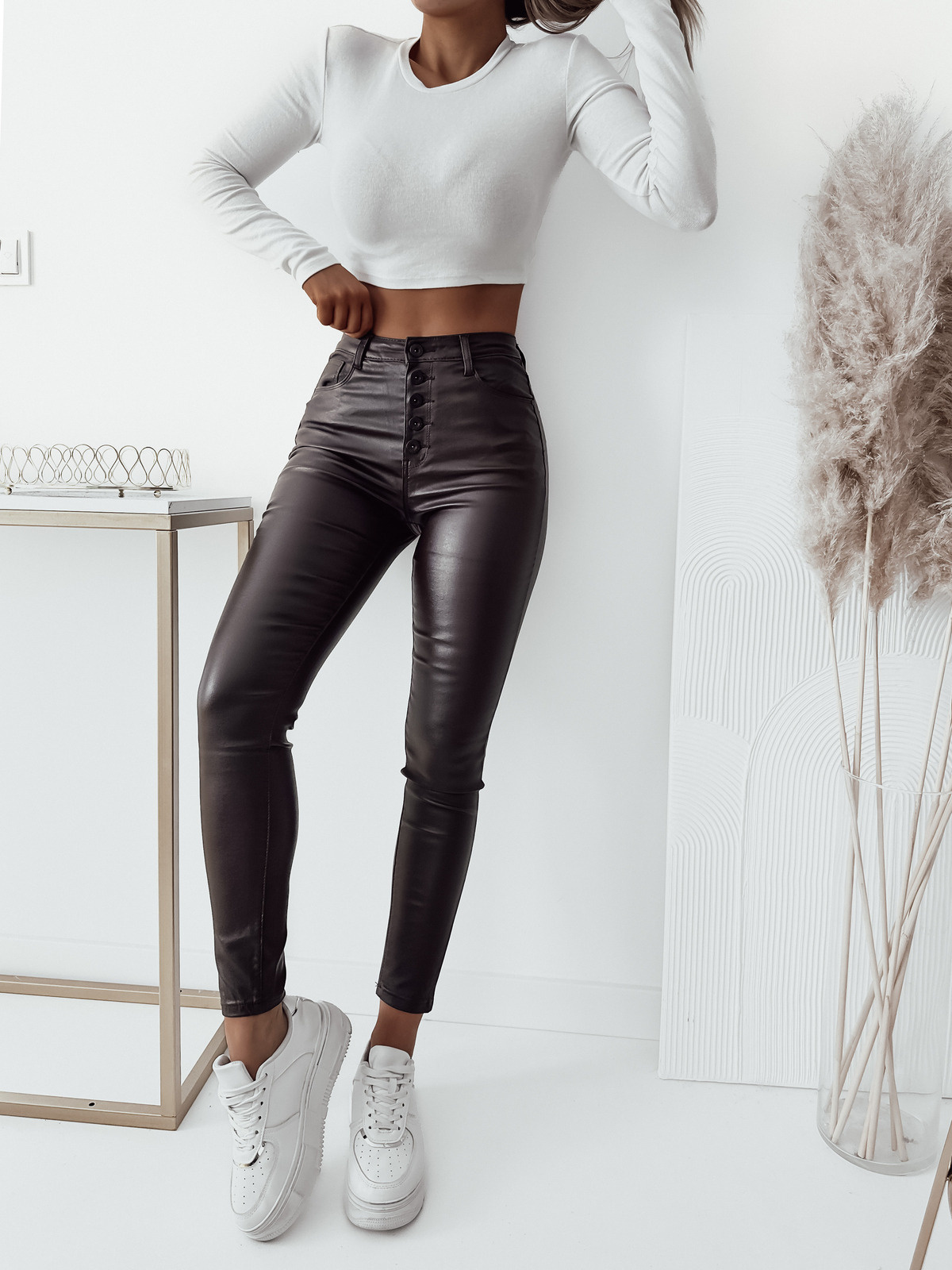 SPODNIE WOSKOWANE Z GUZIKAMI I WYSOKIM STANEM- CIEMNY BRĄZ