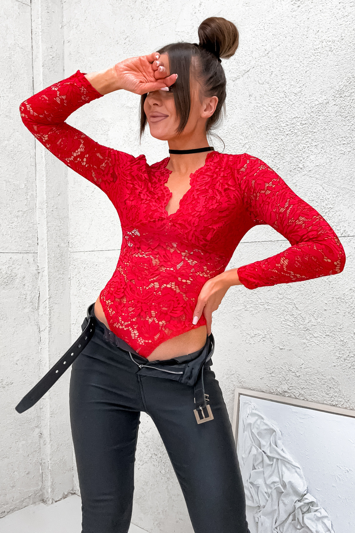KORONKOWE BODY Z DEKOLTEM- CZERWONE