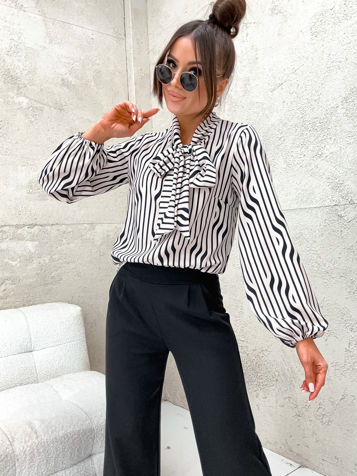 ELEGANCKA BLUZKA Z WIĄZANIEM POD SZYJĄ- BEŻOWA