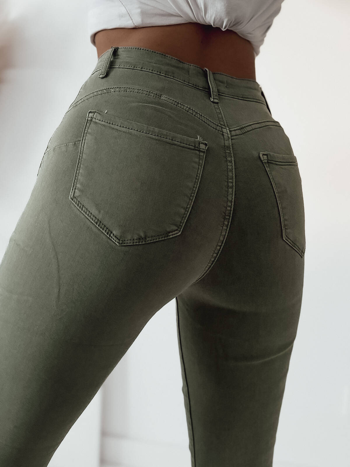 DOPASOWANE SPODNIE Z WYSOKIM STANEM PUSH UP- ZIELONE