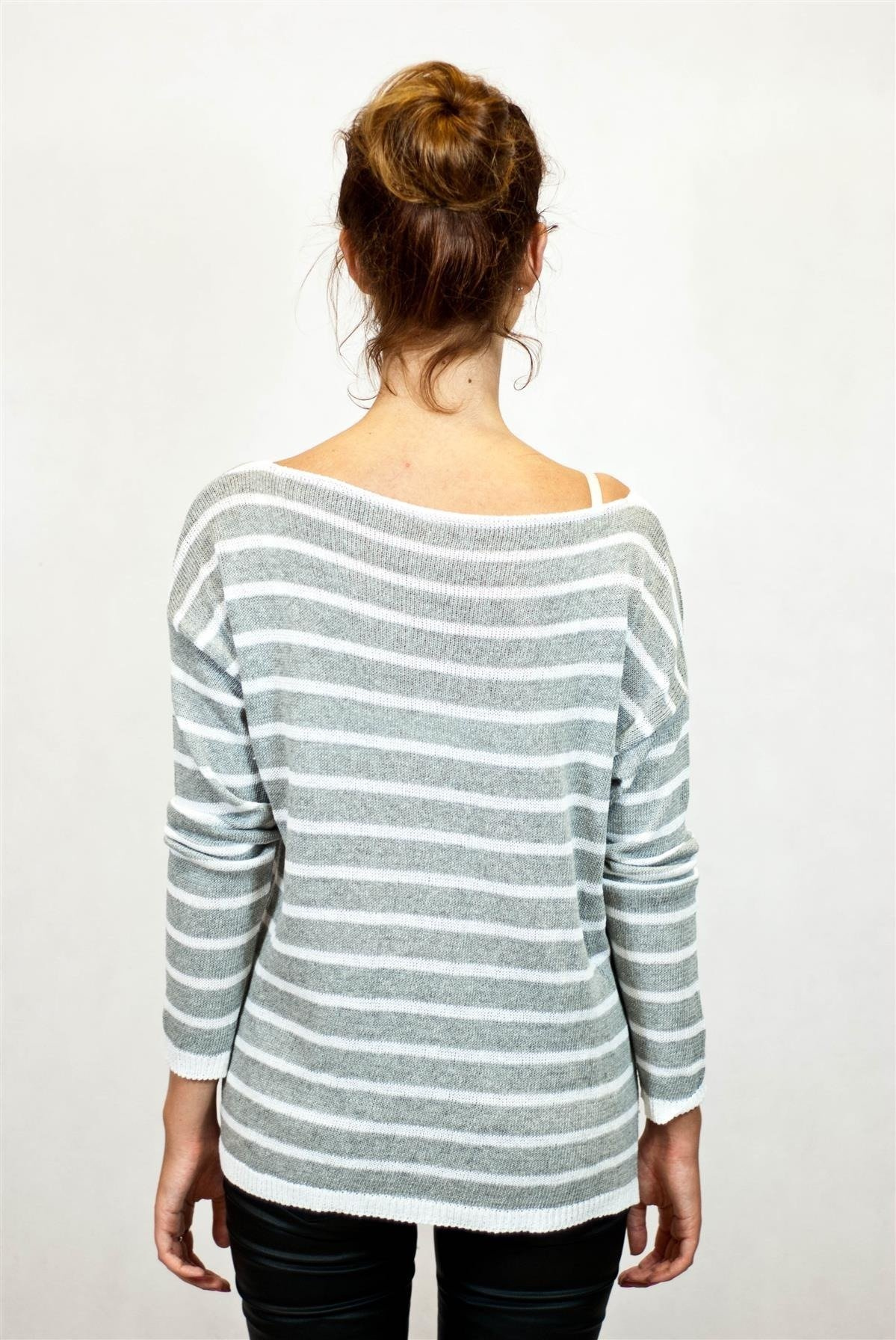 Luźny, bawełniany sweterek, w poziome paski. Z przodu kieszonka.