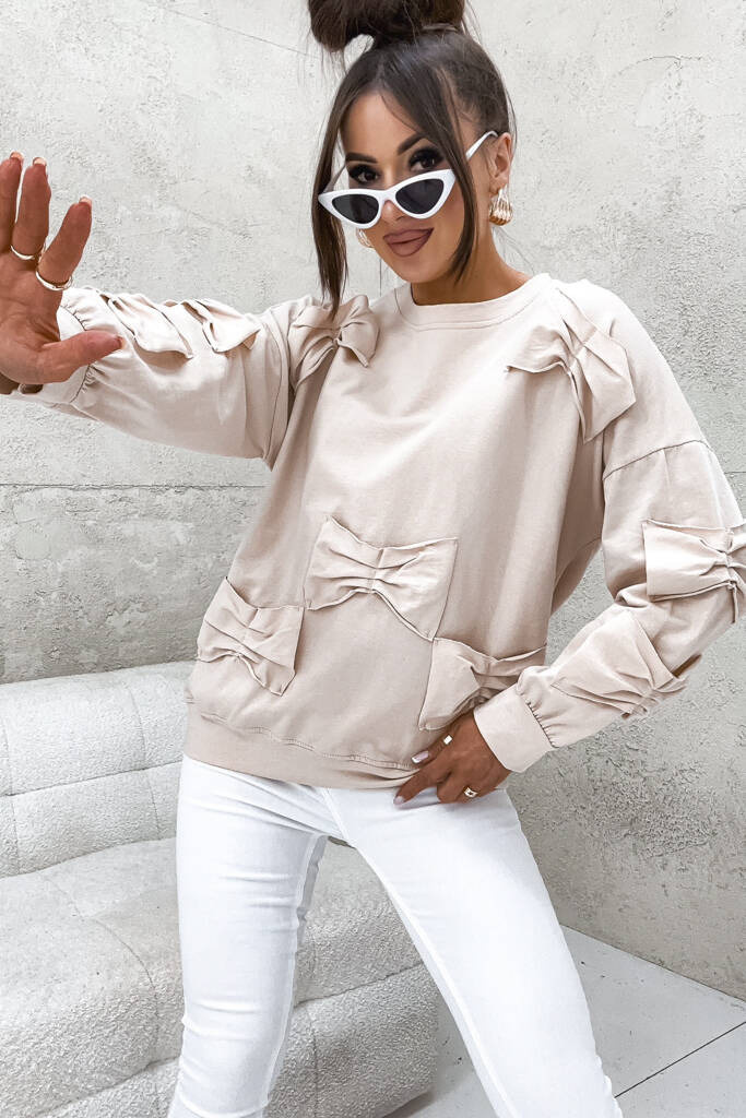 BLUZA Z OZDOBNYMI KOKARDAMI- BEŻOWA