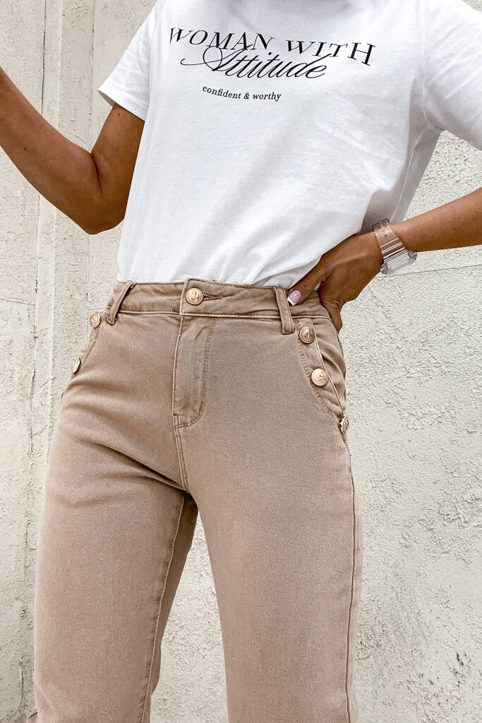 SPODNIE MOM FIT Z OZDOBNYMI GUZIKAMI NA KIESZENIACH -BEŻOWE