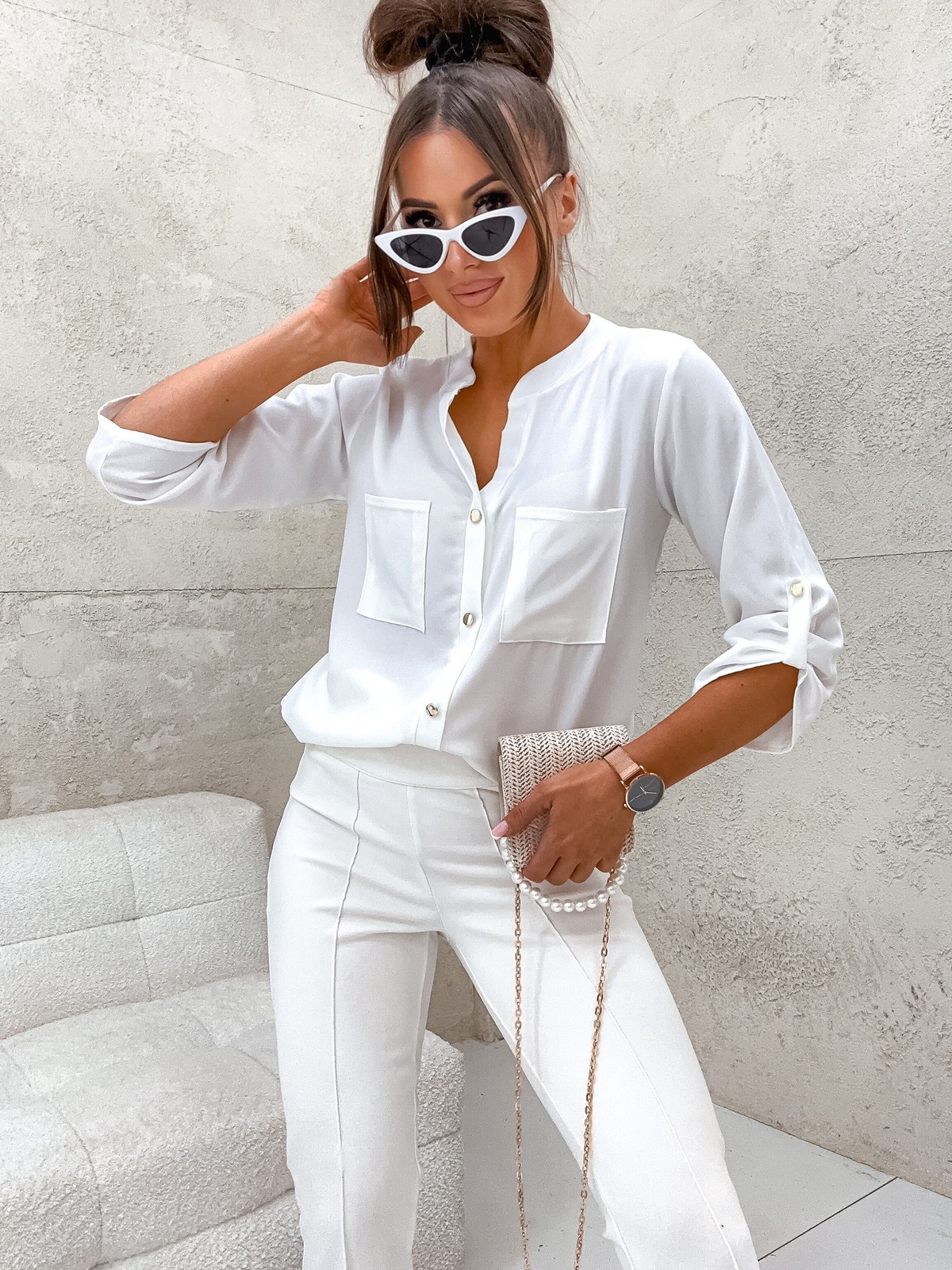 BLUZKA ROZPINANA Z RĘKAWAMI 3/4- BIAŁA