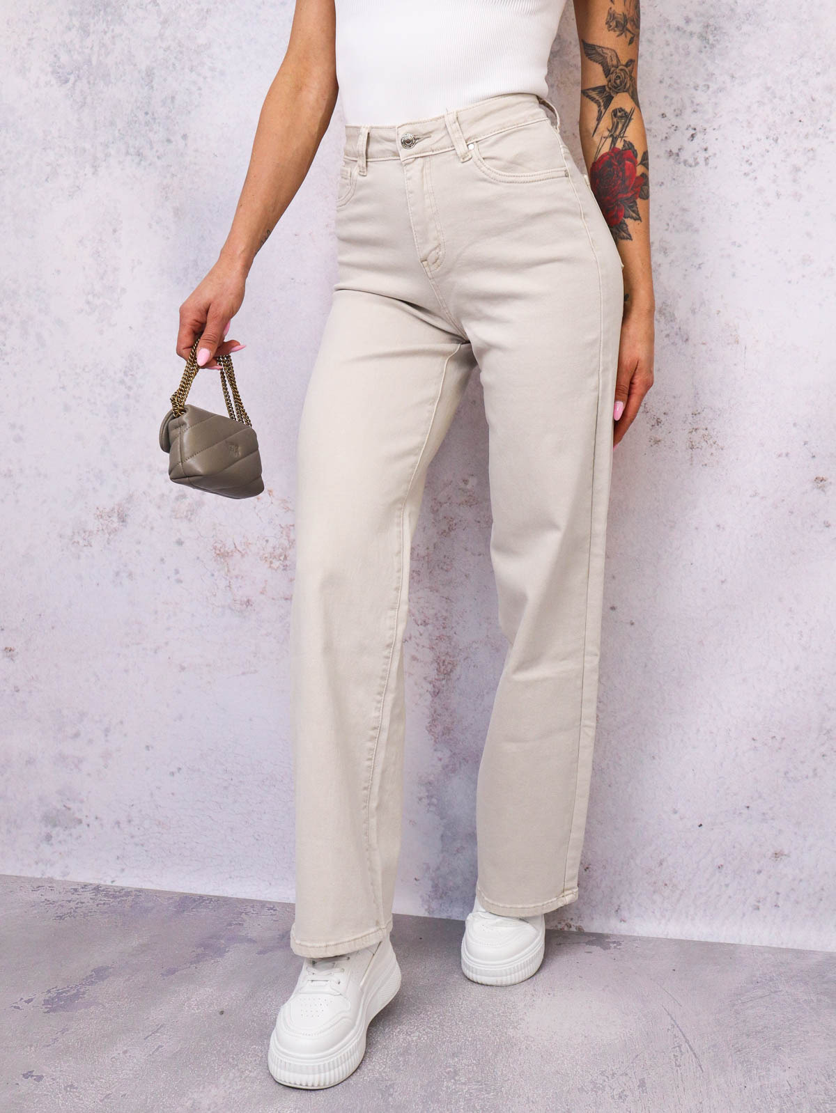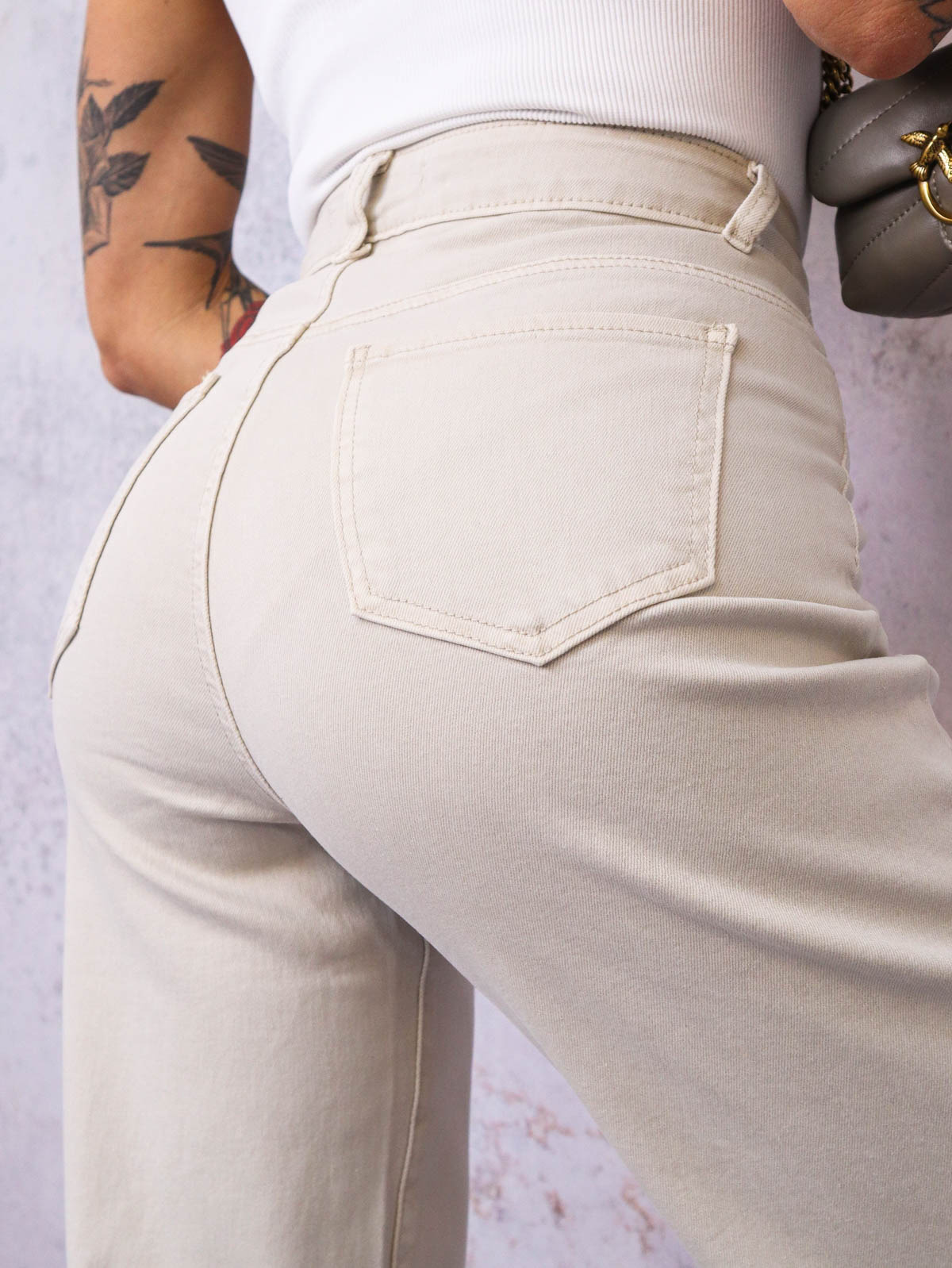 BEŻOWE SPODNIE JEANSOWE Z SZEROKIMI NOGAWKAMI