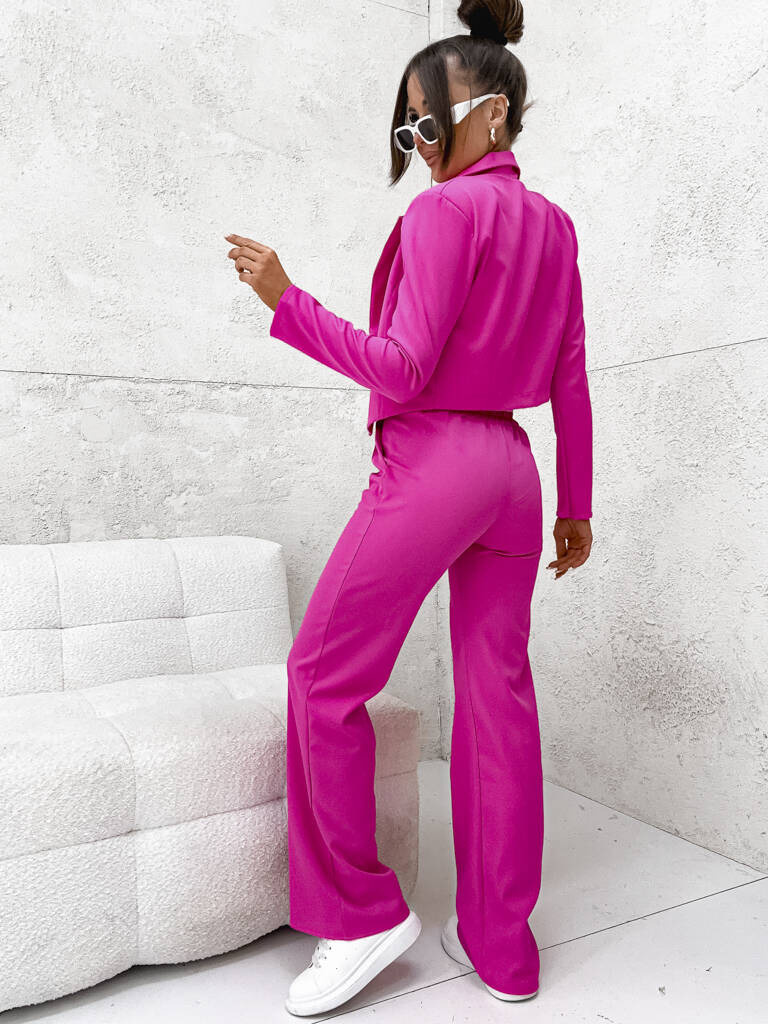 KOMPLET KRÓTKA MARYNARKA+ SPODNIE Z SZEROKĄ NOGAWKĄ- FUKSJA