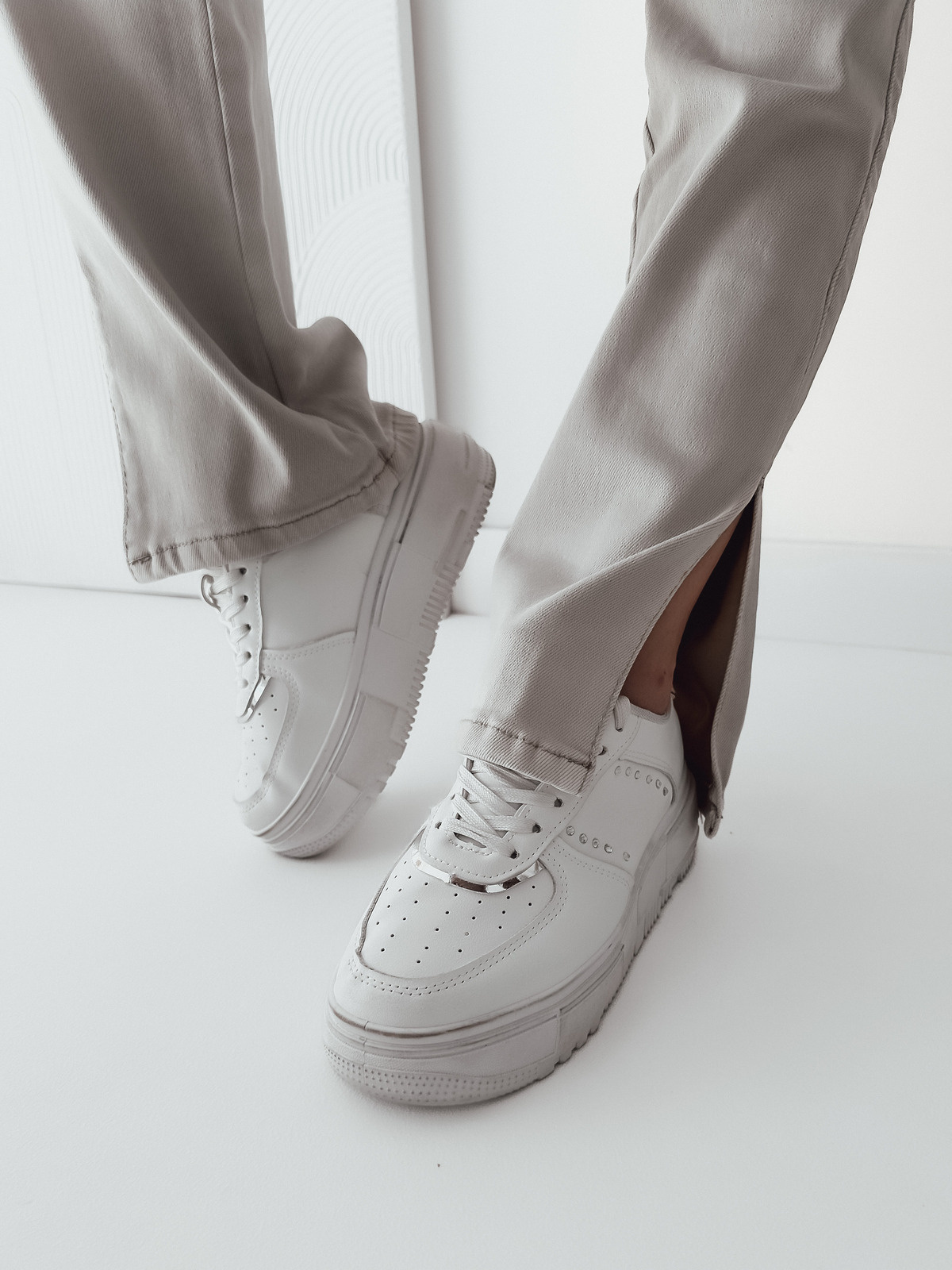SPODNIE JEANSOWE Z WYSOKIM STANEM I WYCIĘCIEM NA NAGAWCE- BEŻOWE