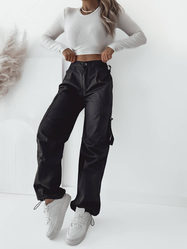 SPODNIE SPADOCHRONOWE Z REGULOWANYMI STOPERAMI- CZARNE