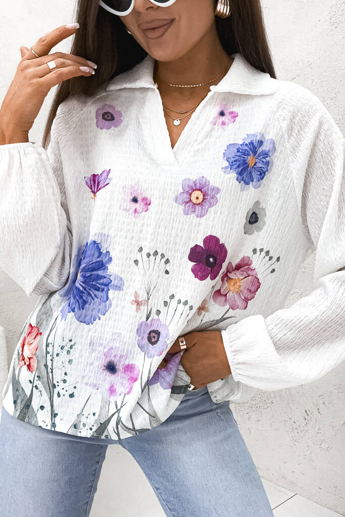 BLUZKA ONESIZE Z KOŁNIERZYKIEM I KWIATAMI-BIAŁA