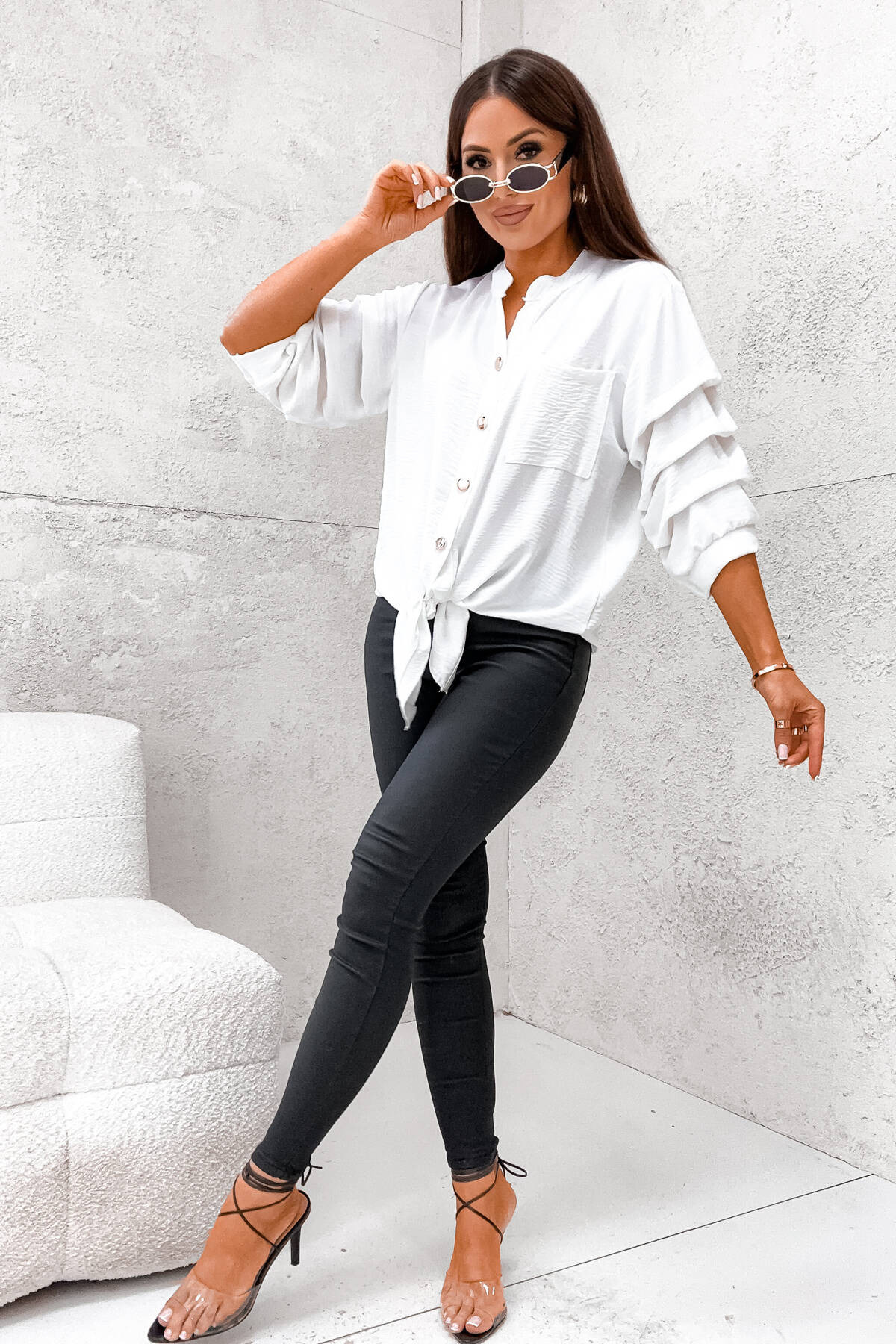 BLUZKA ZE ZŁOTYMI GUZIKAMI I RĘKAWEM FALBANĄ- BIAŁA