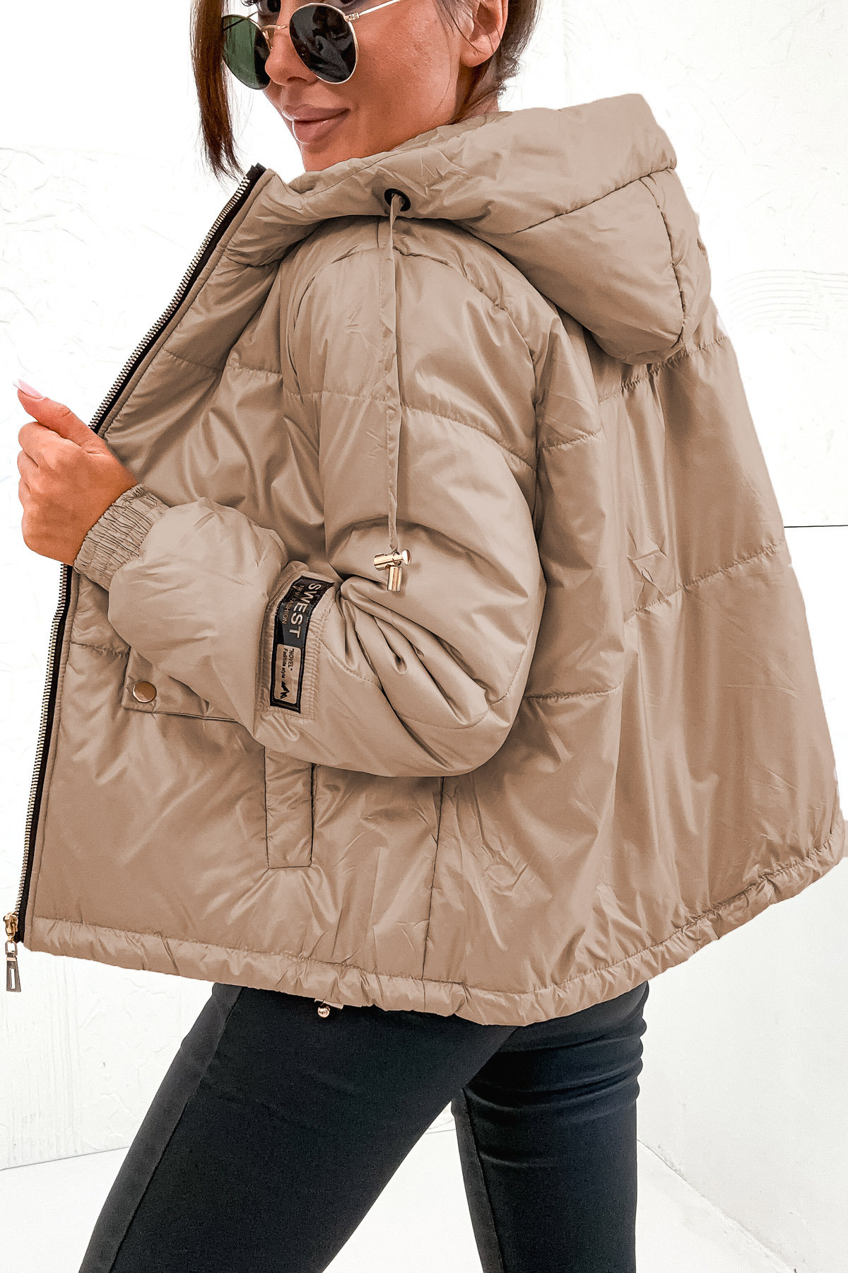 KURTKA ASYMETRYCZNA ZE ZŁOTYMI ELEMENTAMI- CIEMNO BEŻOWA
