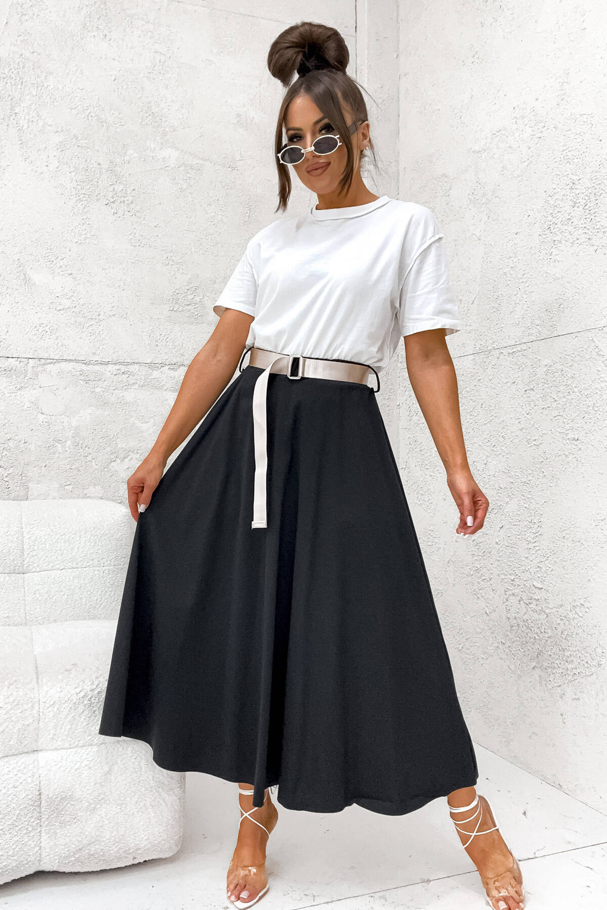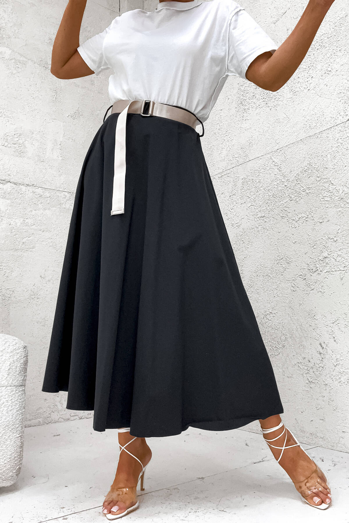 ROZKLOSZOWANA BAWEŁNIANA SPÓDNICA Z PASKIEM- CZARNA