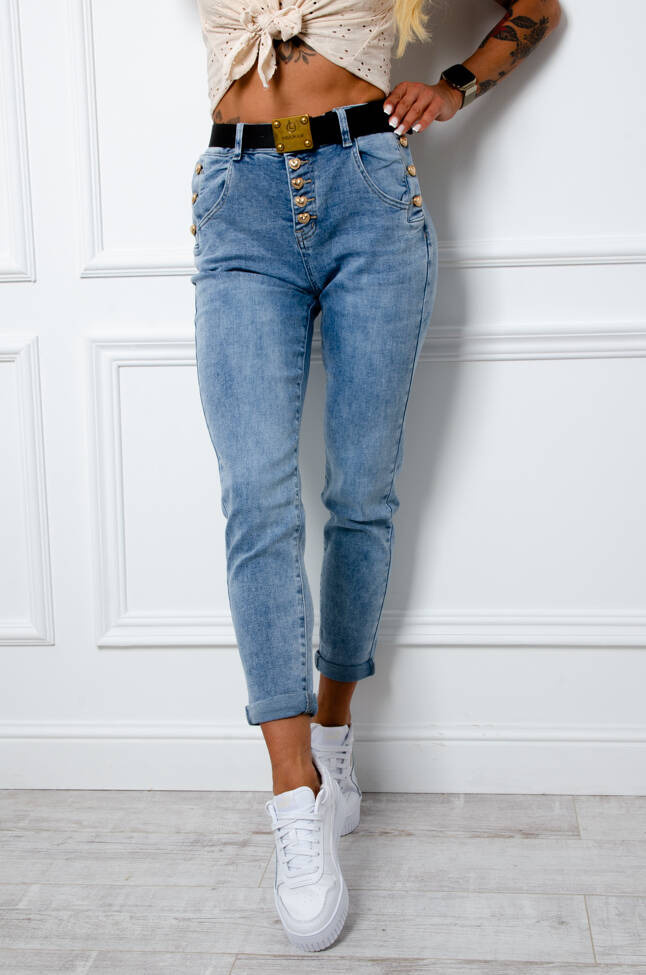 SPODNIE JEANSOWE Z GUZIKAMI W KSZTAŁCIE SERCA + PASEK