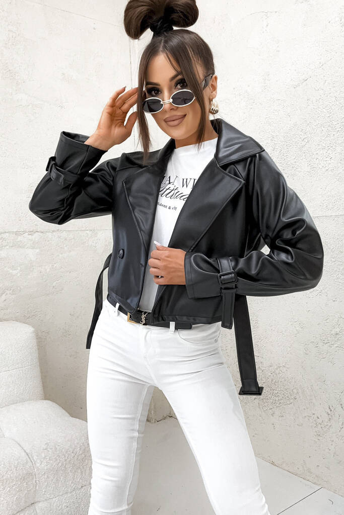 KURTKA KRÓTKI TRENCZ Z IMITACJI SKÓRY- CZARNA