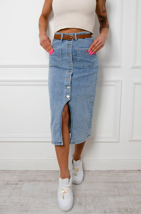 JEANSOWA SPÓDNICA MIDI ZAPINANA NA GUZIKI