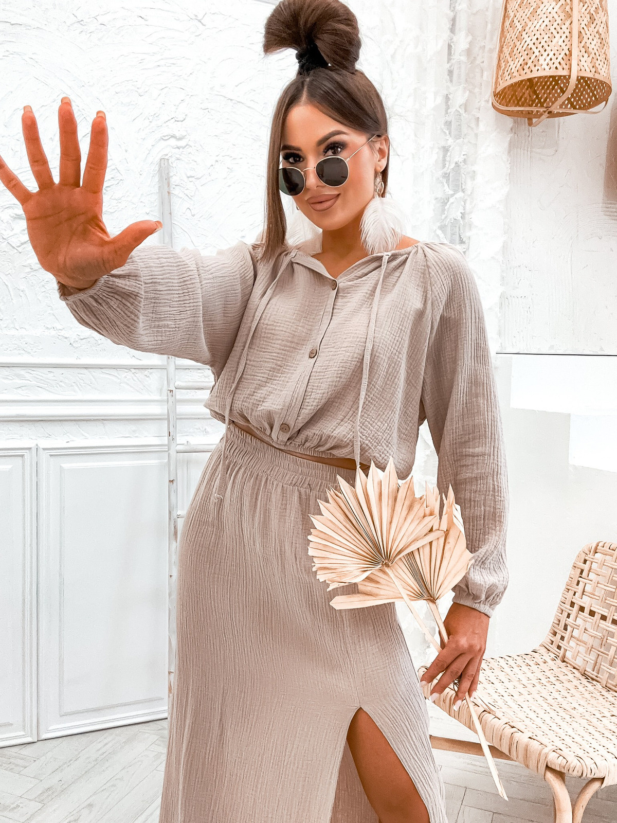KOMPLET BAWEŁNIANY BLUZKA+ SPÓDNICA- BEŻOWY