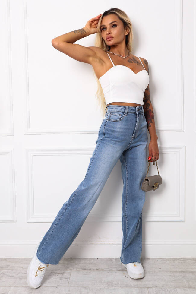 SPODNIE JEANSOWE SZEROKIE Z SUROWĄ NOGAWKĄ