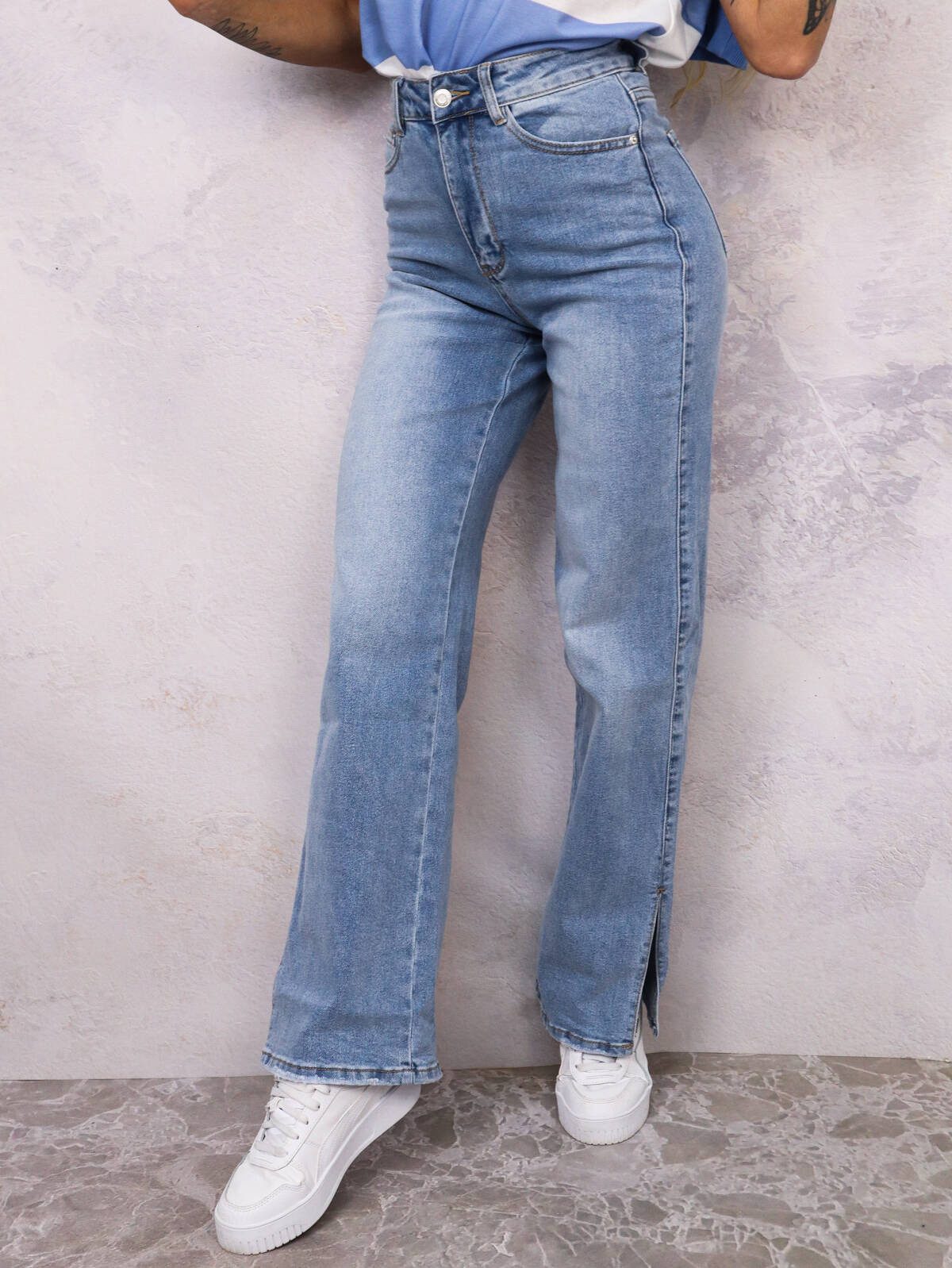 SPODNIE JEANSOWE ROZSZERZANE Z WYCIĘCIEM NA NOGAWCE