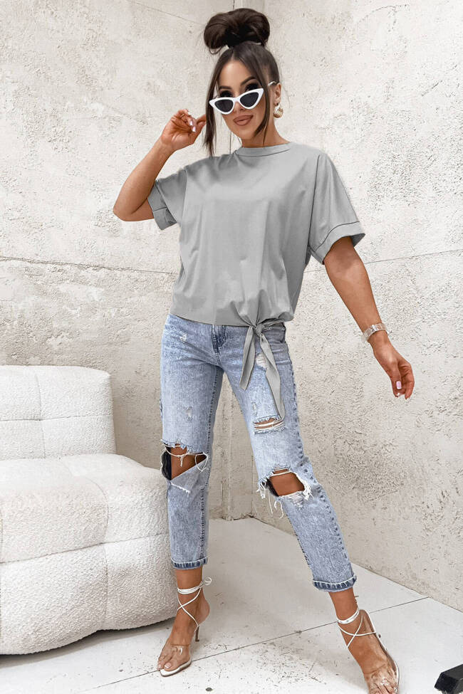 BLUZKA NA KRÓTKI RĘKAW WIĄZANA NA BOKU- SZARA