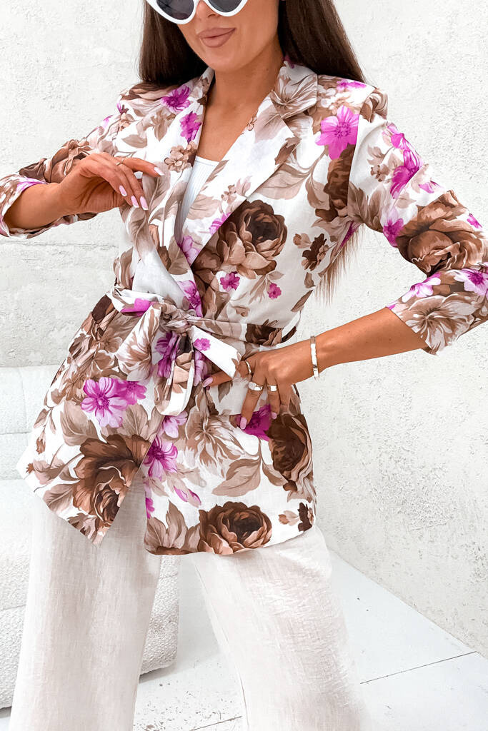 KOMPLET MARYNARKA WIĄZANA+ SPODNIE- RÓŻOWY