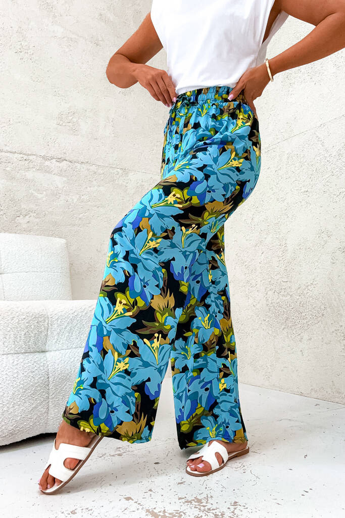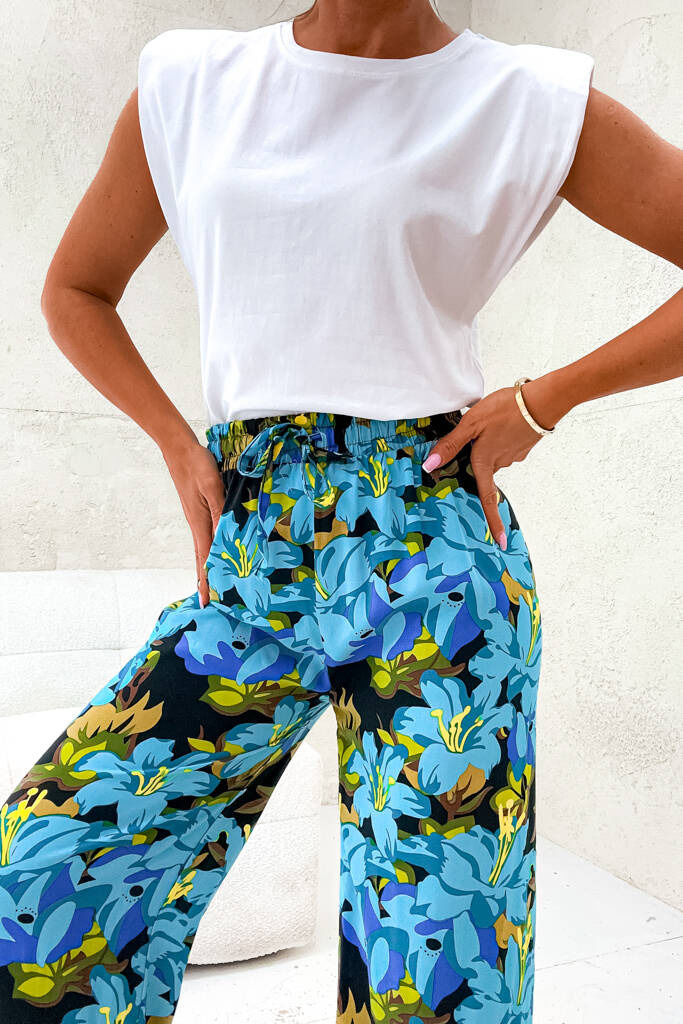 SPODNIE BAWEŁNIANE W KWIATY- NIEBIESKIE