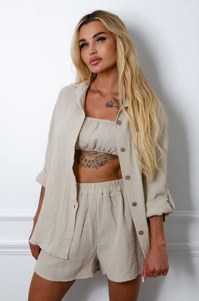 MUŚLINOWY KOMPLET 3-CZĘŚCIOWY- BEŻOWY