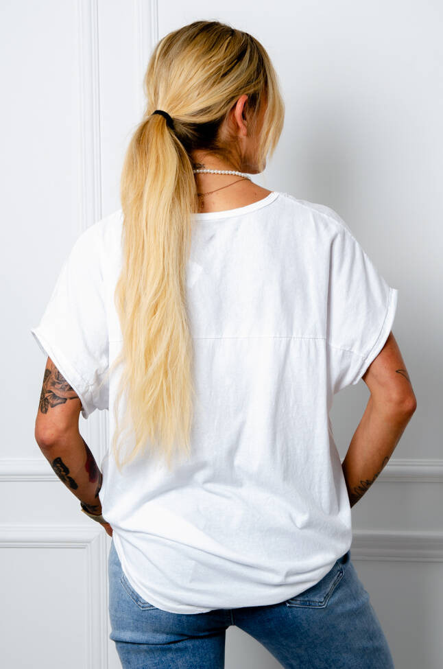 BLUZKA Z KWIATEM I WIĄZANIEM NA DOLE- BIAŁA