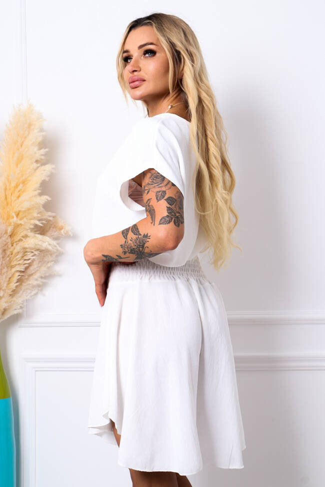 KOMPLET BLUZKA Z WIĄZANIEM I WISIORKIEM+ SPÓDNICO-SPODENKI- BIAŁY