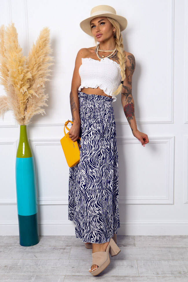 WZORZYSTA SPÓDNICA MAXI Z GUMĄ W PASIE- GRANATOWA