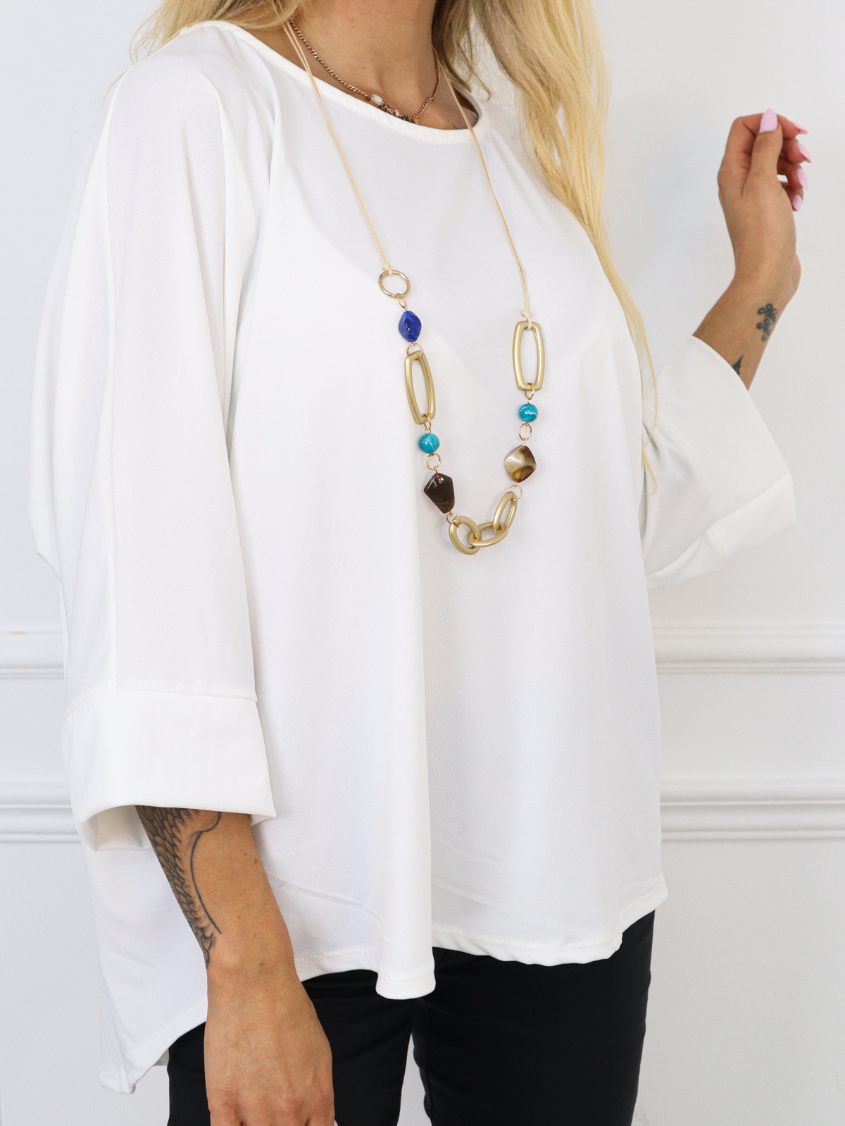 BLUZKA ASYMETRYCZNA Z WISIORKIEM - BIAŁA